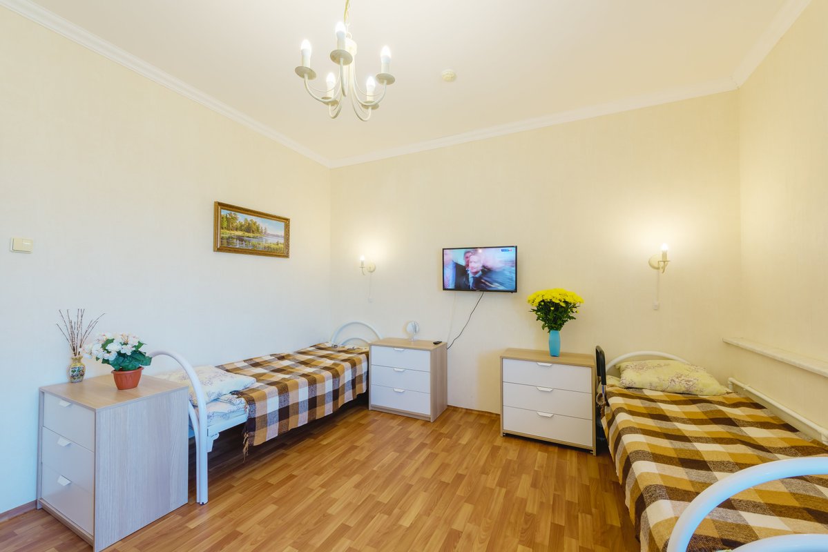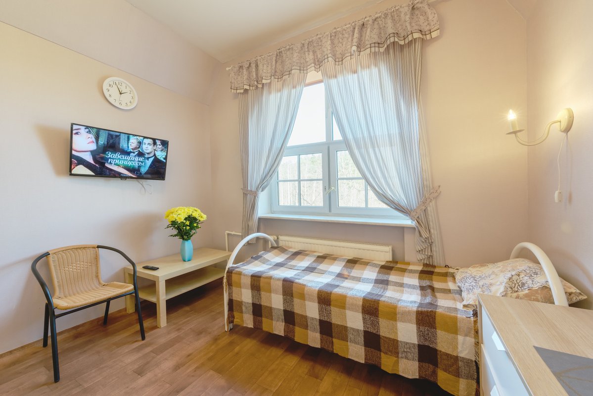 В палате до 4-х человек, есть телевизор. Трехразовое питание. Персонал относится хорошо к родственникам, находятся в пансионате почти год.