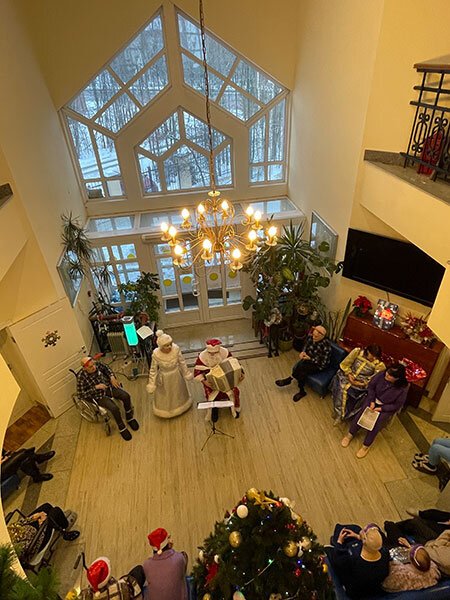 От имени Думовой Валентины , которая находится в вашем замечательном пансионате с июля 2019 года и от нас , конечно же, поздравляем весь коллектив с наступающим Новым Годом! Ираду Анатольевну, которая создала такую дружную добрую команду, медицинскую часть: доктора Виталия Антоновича , медицинских сестёр : Наталью Михайловну, Марию Михайловну, Римму. Медики очень четко работают: звонят заранее, когда заканчиваются лекарства, , благодаря медикам не было сезонной вспышки заболеваемости , мы рады , что в пансионате такой хороший медицинский коллектив! Социальных сиделок:Аню, Татьяну, Ларису, Асю, Лену, Свету! Благодаря вашему труду , всегда чисто, аккуратно, вы позитивные, вы всегда рядом, вы веселые, отзывчивые, любой вопрос легко решается, ни разу мы не видели вас раздраженными; благодаря такому общению Валентине в пансионате очень комфортно, она чувствует себя дома.Поздравляем поваров и всех работников вспомогательных служб! Мы не всех видим и знаем, но ваш труд на лицо: в столовой очень красиво, семейная обстановка, приветливые люди!Мы рады,что мы с вами, потому что ваш пансионат, по сравнению с другими пансионатами, с которыми пришлось столкнуться,высоко держит планку и уход за пожилыми людьми и отношение к ним просто удивительны! Мы спокойны за Валентину, знаем, что она в надежных добрых руках!!!